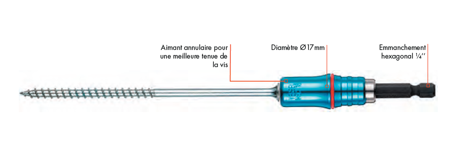 Douille magnétique sur l’anneau pour un maintien parfait des vis.