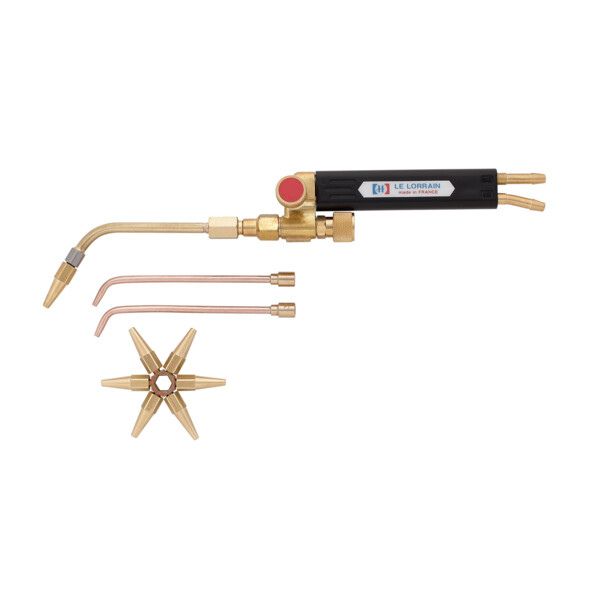 livré avec 1 lance en laiton rigide avec clé porte becs et 7 becs de 40 à 400 l/h, filetage 8 x 100, 2 lances malléables en cuivre recuit.