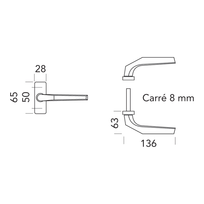 Carré de 8 mm pour porte de 60 mm