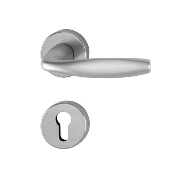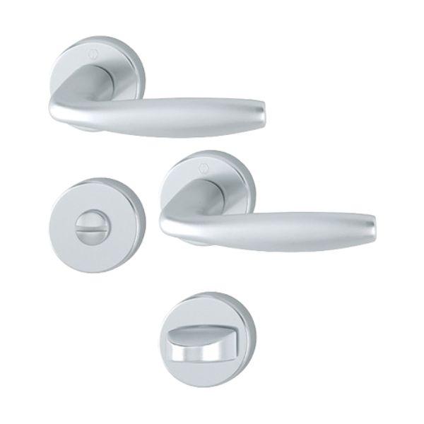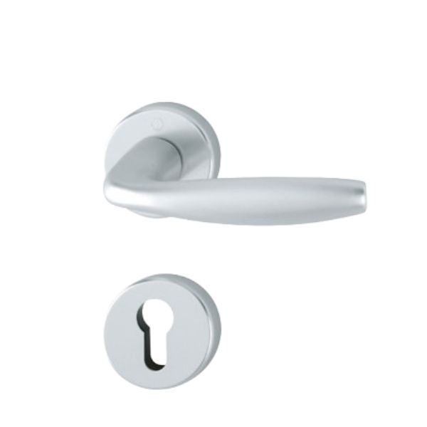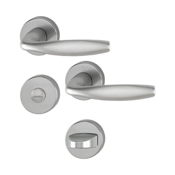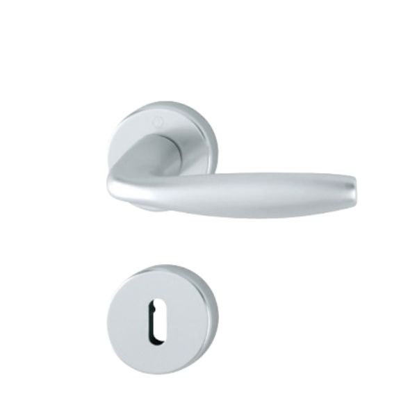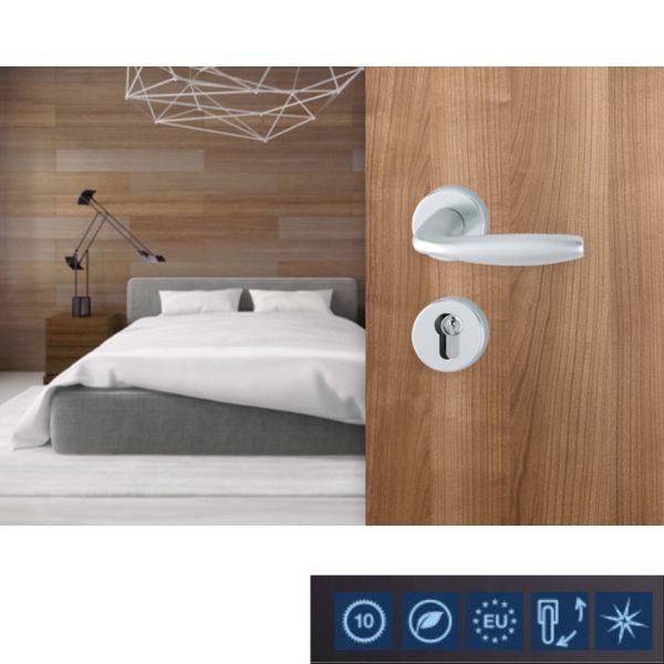 Cet ensemble de poignées de porte sur rosaces rondes NEW YORK de HOPPE est certifié pour équiper les bâtiments publics, tertiaires et résidentiels à fréquentation élevée.