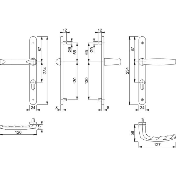 Garniture HOPPE en aluminium sur plaques étroites, pour porte-fenêtre :