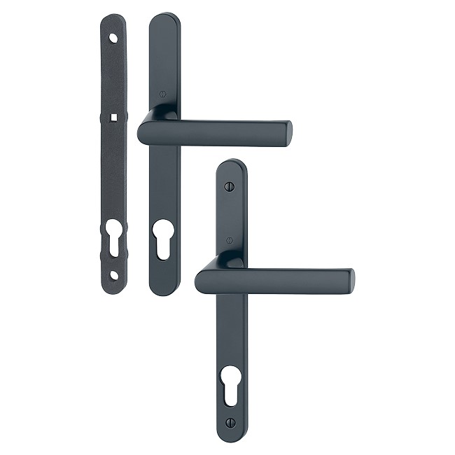 Garniture compléte en aluminium anodisé ou époxy sur plaque étroite fondue pour porte fenêtre.