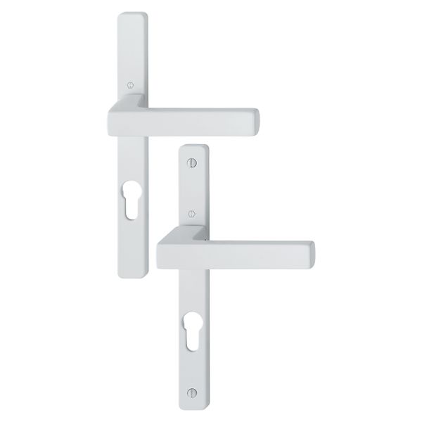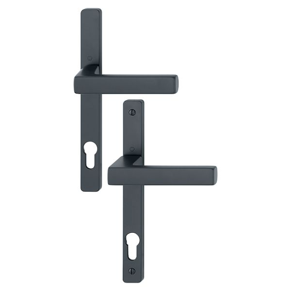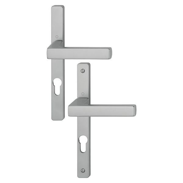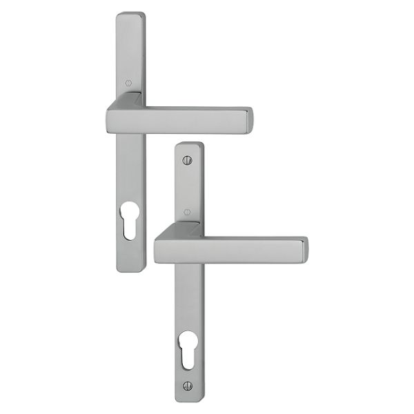 Cet ensemble de poignées de porte sur plaques étroites TOULON de HOPPE est destiné aux portes à profil étroit ou aux portes-fenêtres.