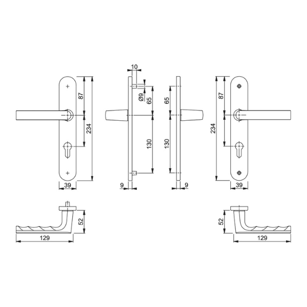 Assemblage : poignées libres, bagues de guidage sans entretien.Liaison : carré à montage rapide HOPPE avec carré plein HOPPE (poignées mâle/femelle).Plaques : piliers de fixation côté extérieur, insert d’étanchéité en mousse ; côté intérieur sans.Fixation : visible côt& [...]