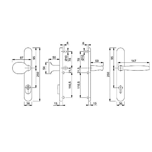 Ensemble palière et garniture aluminium sur plaque étroite pour porte-fenêtre