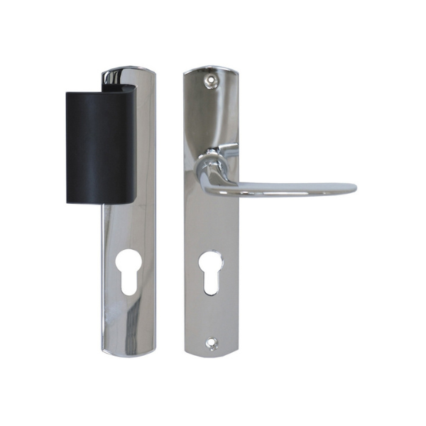 Vis (fournies) dans la même finition que la plaque, pour portes de 40 à 45.
