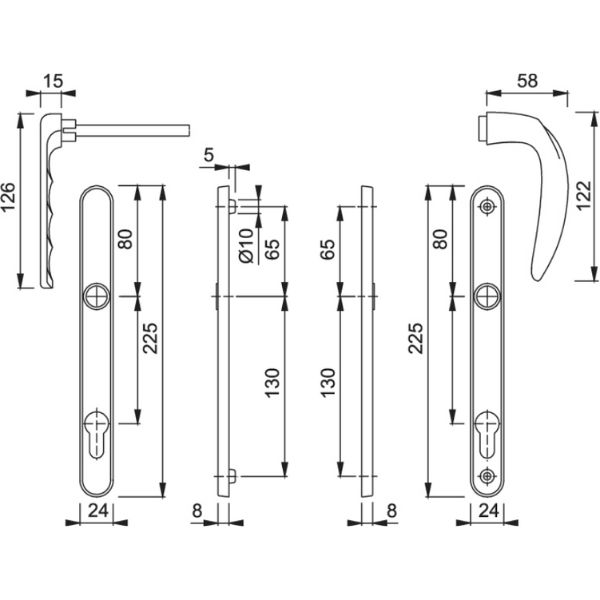 POIGNÉE DE PORTE ÉTROITE ATLANTA SAILLIE RÉDUITE PVD