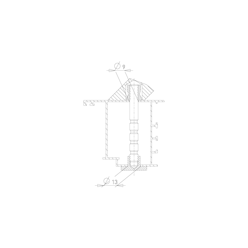 Pré-perçage Ø9mm coté barre de tirage, Ø13mm coté opposé barre de tirage.