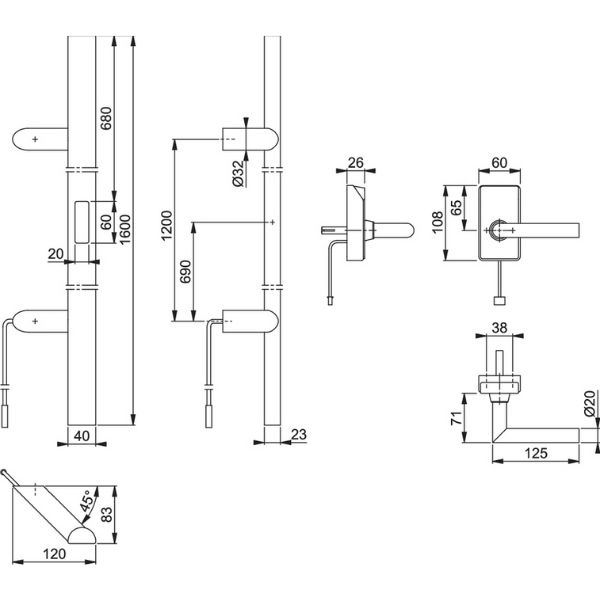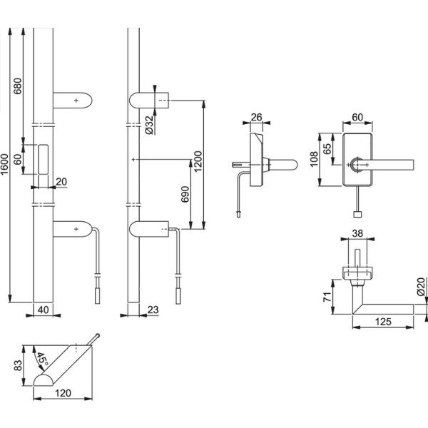 - Distance d'installation : min. 20 cm à max. 50 cm entre l'extrémité inférieure de la poignée battante et le sol