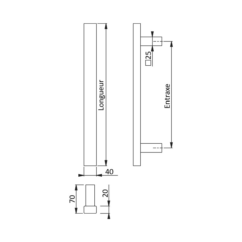 Poignée de tirage simple 20x40 droit inox - FORLOCK