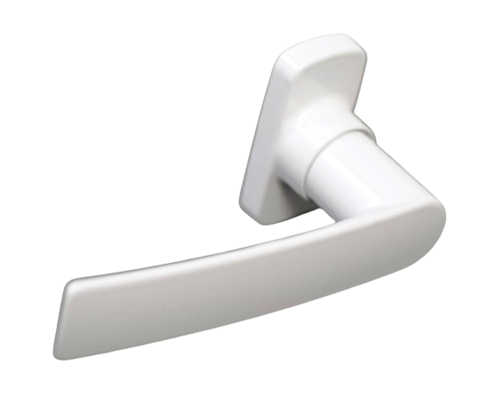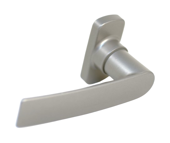 Béquille de porte en aluminium moulé sous pression avec ressort de rappel et rosace cache-vis à maintien de position par ressort.