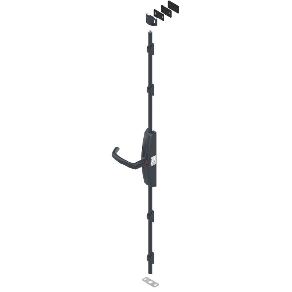 Livré avec 3 guides tringles , 1 jeu de cales, 1 gâche haute et basse