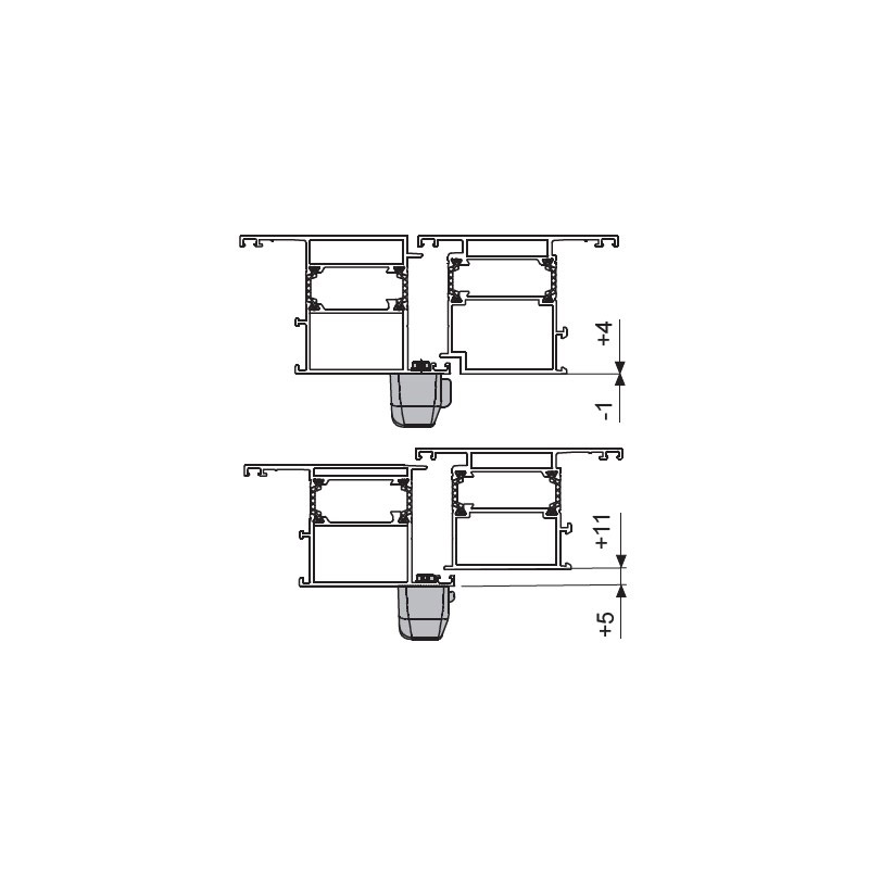 Réglable verticalement et horizontalement. Applicable sur profils affleurants et à recouvrement jusqu’à 11mm