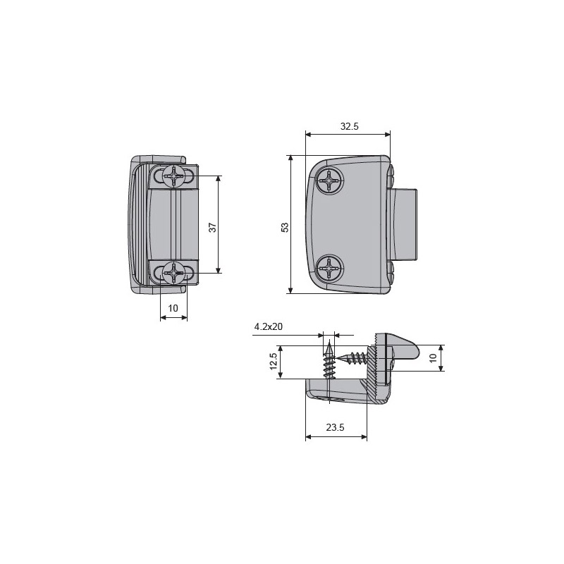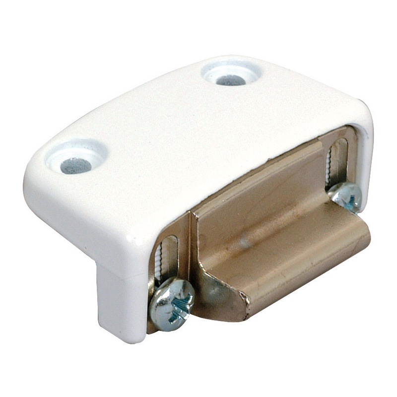 Gâche en zamac pour serrures centrales et pênes haut-bas (à exclusion de l'art. 8401I), utilisable sur portes à deux vantaux, réglable en vertical et applicable sur profils avec recouvrement de 16 à 26mm, sans l’aide de cales supplémentaires.