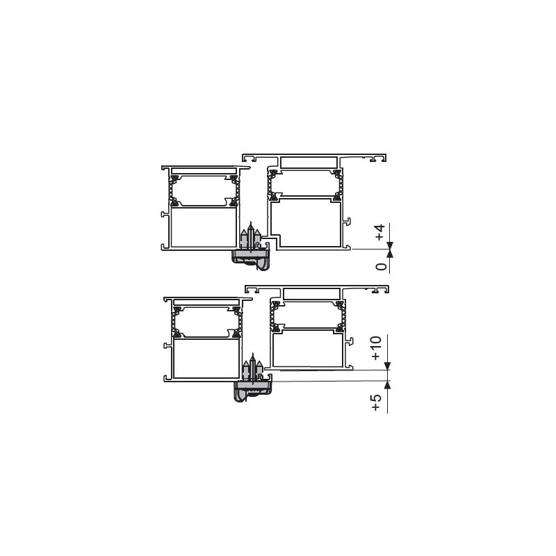Réglable horizontalement. Applicable sur profils affleurants et à recouvrement jusqu’à 10mm