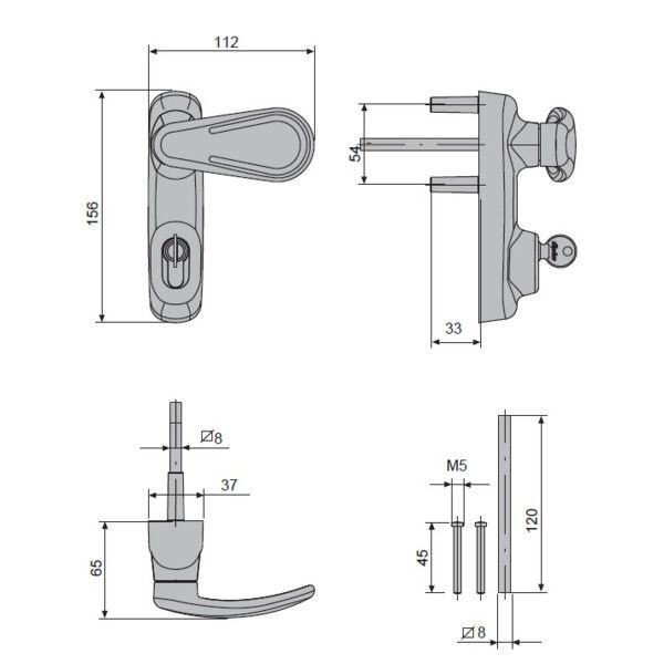 Corps et poignée en Zamak, mécanisme en acier, contre-plaque