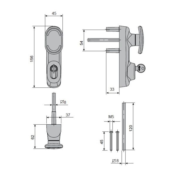 Corps et pommeau en Zamak, mécanisme en acier, contre-plaque