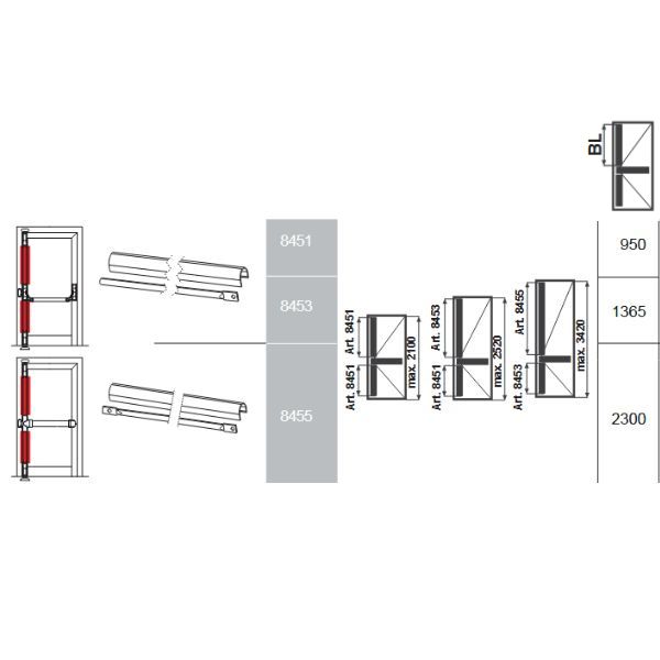 • Porte de hauteur maximale 2520 mm = Tringle de longueur 950 mm