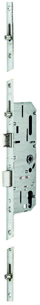 Sécurité• Fonctionne avec un cylindre profilé européen panneton DIN et protecteur en acier moulé• 4 points de fermeture (20000)• Verrouillage du pêne dormant et blocage de la béquille à la cléRésistance• Gâche centrale renforcée, empennage en acier (vendue sép [...]