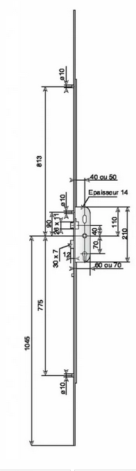 • Gâche centrale renforcée, empennage en acier (vendue séparément)