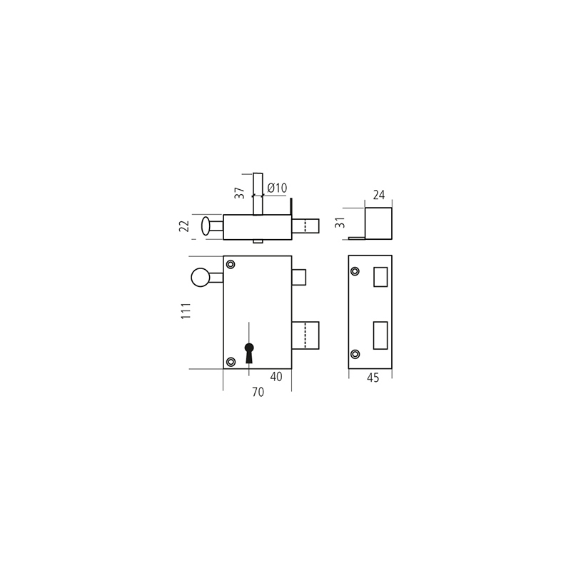 - Pêne 1/2 tour réversible pour porte ouvrant à l'extérieur