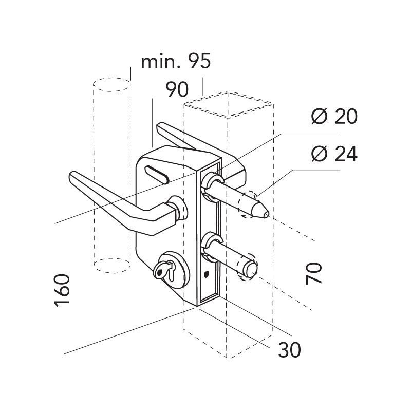 Pêne réglable de 20 mm en continu sans démontage de la serrure ( 40 à 60 mm)