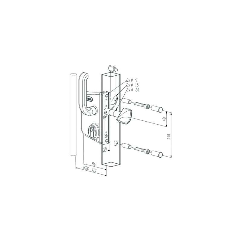 Tube de protection en acier inoxydable autour de l'axe permettant d'éviter la coupe du pêne"