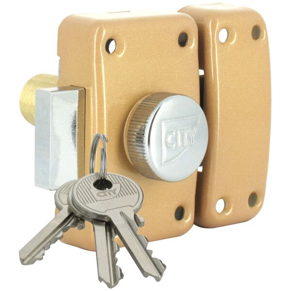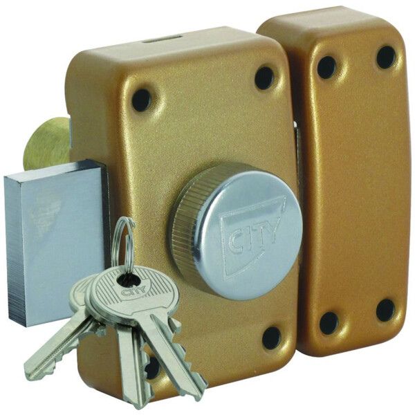 3 clés numérotées versions bouton coté intérieur (City 25) et double entrée (City 26) coffre et gâche en acier embouti de 15/10 cylindre 5 goupilles goupille anti-arrachement.