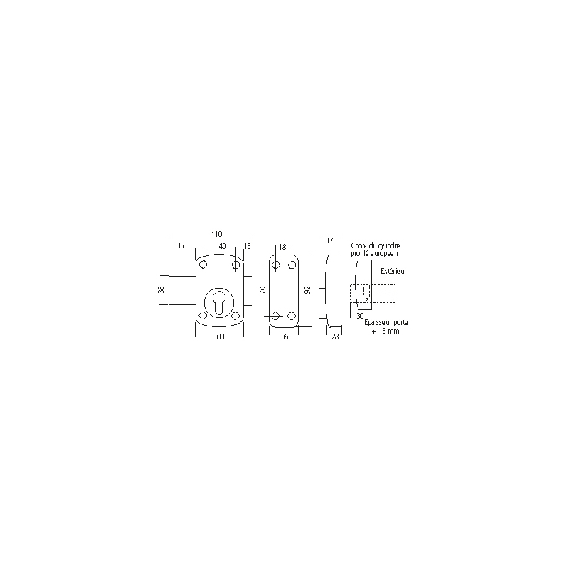 Coffre et gâche en acier embouti, épaisseur 20/10ème