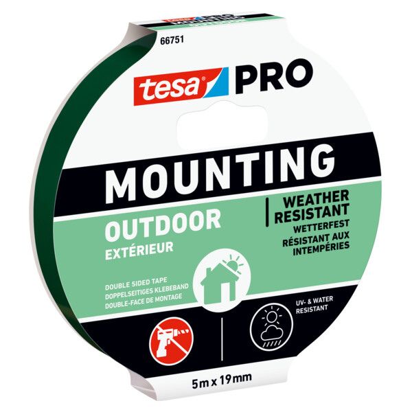 Ruban double face, solide et résistant aux intempéries, à la température, pour des applications extérieures variées