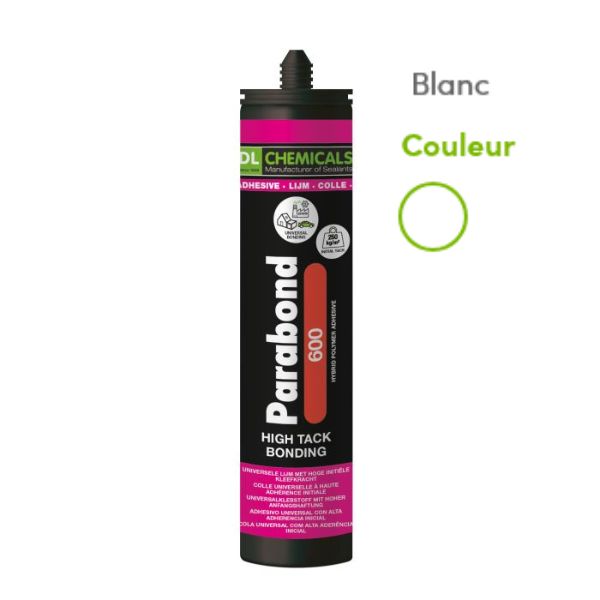 ""Tack"" élevé, adhère sans primaire sur : aluminium, zinc, cuivre, pierre naturelle, béton, brique, plaques de PVC. Adapté pour la pose des plaques PVC expansé haute densité, verres de sécurité et miroirs.