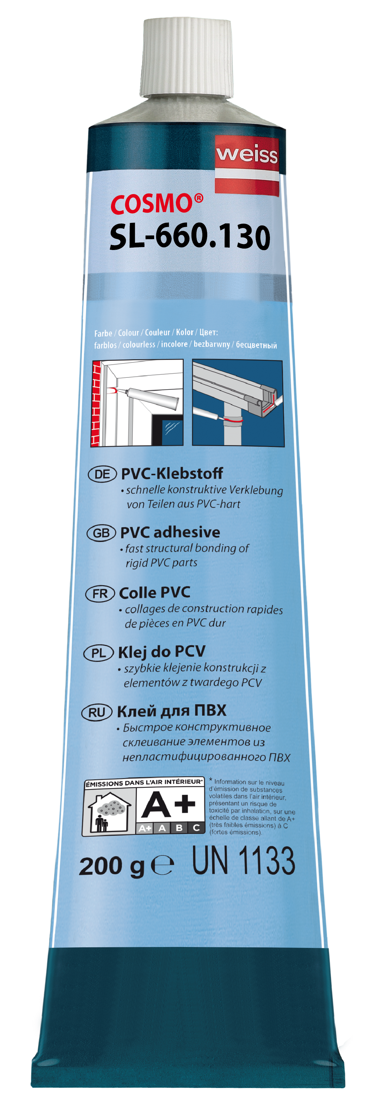Colle PVC Haute Viscosité.Teinte blanche ou translucide.Tube de 200 gr.Particulièrement résistant aux ultraviolets.Convient au collage des matériaux en PVC rigide, comme rejets d'eau, profilés et barres complèmentaires, guides de volets roulants...Rapidité de collageSoudure à froidManipulation après collage rapide