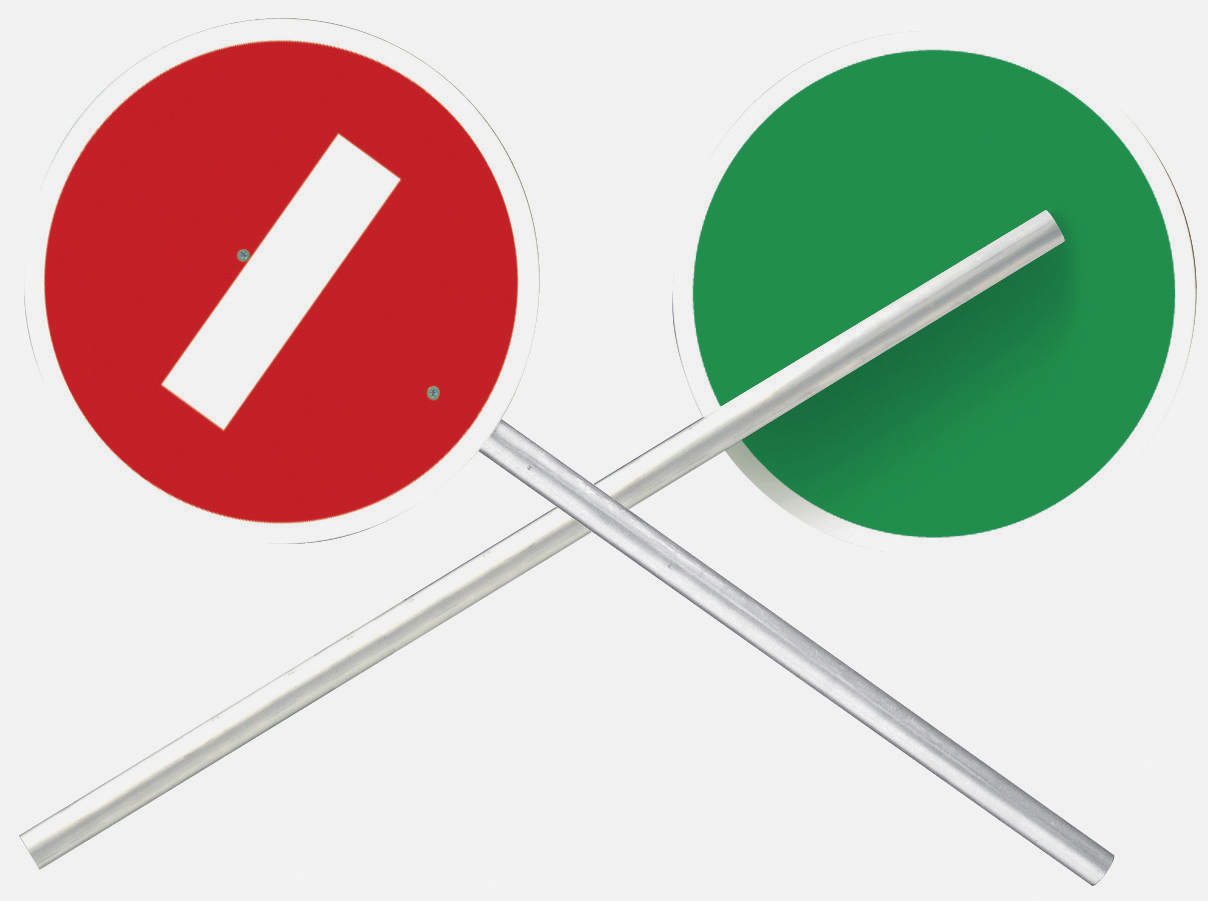 un côté vert passage autorisé, un côté rouge sens interdit, pour alternance manuelle de la circulation sur chantier