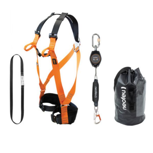 Kit muni d'un antichute à rappel automatique permettant à l'utilisateur une mobilité sur une distance maximalede 2 mtesté à 140 kg pour une utilisation à l'horizontale comme à la verticale et en facteur de chute 2composé également d'un harnais antichute confort 2 points (frontal et sternal), d'un anneau de sangle 1m et d'un sac de transport. Conforme à la norme EN362.