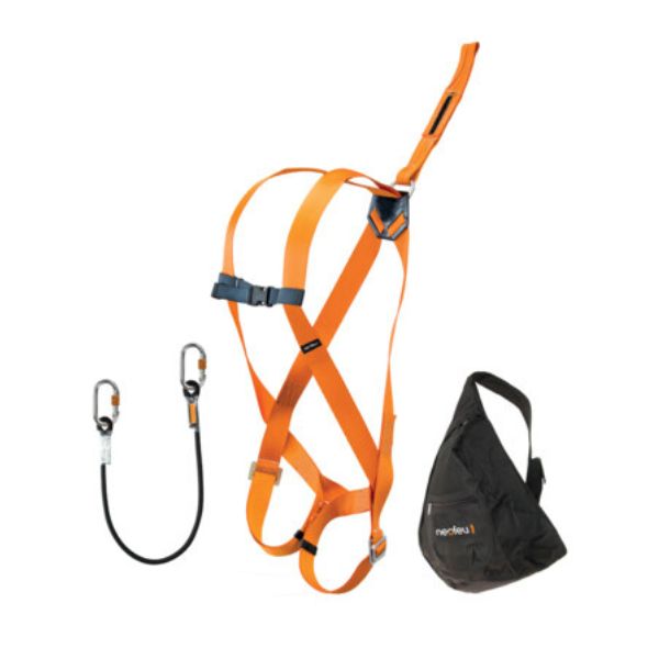 ce kit est composé d'un harnais antichute 1 point dorsal, d'une longe simple de retenue de 1m