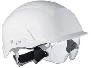 Casque de protection intégrant des surlunettes de protection contre les impacts d'énergie moyenne (revêtement anti-éraflures et anti-buée)