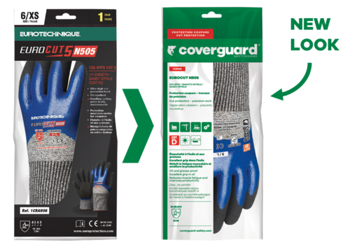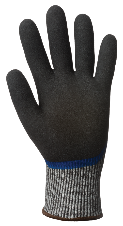 Double enduction 3/4 de nitrile bleu lisse et nitrile noir effet grainé de lapaume,