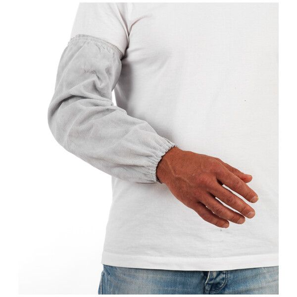 MANCHETTE SOUDEUR EN CROUTE DE CUIR GRIS CLAIR LA PAIRE
