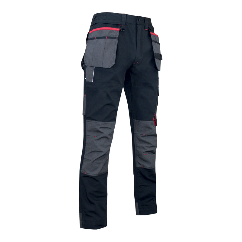 Pantalon tissu canvas avec poches genouillères + renforts oxford 600D imperméable• Ceinture élastiquée côtés et réhaussée • braguette zip spirale • anneau «D» • 2 grandes poches main + 2 poches outils amovibles et rétractables • cuisse gauche : 1 grande poche zippée à soufflet + 1 grande poche à rabat + 1 poche téléphone • poches genouillères double position [...]
