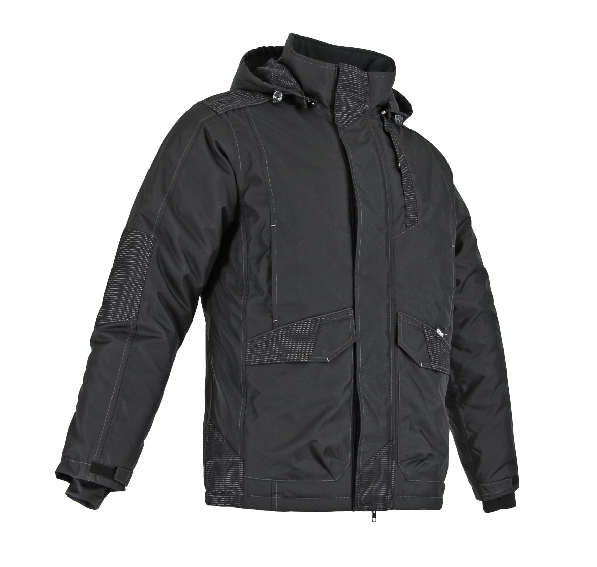 Parka matelassage ThinsulateTM avec empiècements renforcés + capuche amovible avec tissus rétro-réflechissant - 2 poches reposes mains doublées polaires - 2 poches rabat - 1 poche poitrine zippée - Poignée intérieur en bord côtes avec passe-pousse - passepoils rétro réfléchissant - doublure polaire sur épaule - zip dos pour marquage.