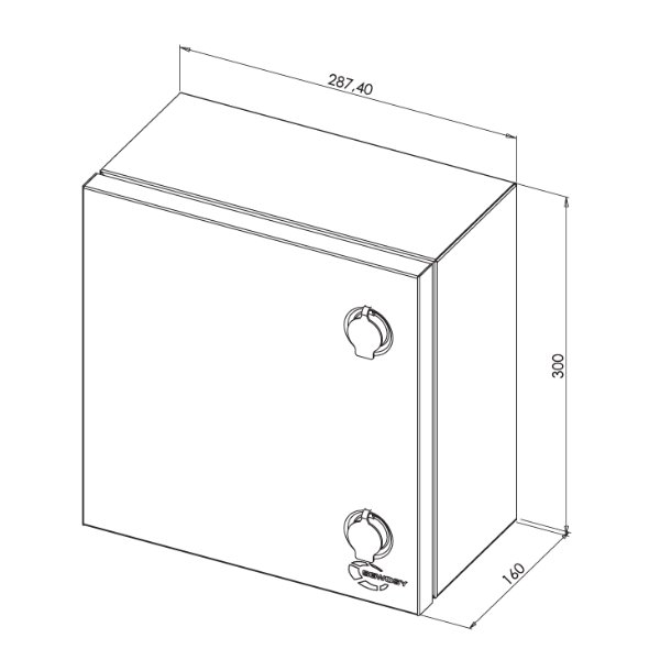 Coffret d’équipement professionnel étanche de 300 mm de hauteur.
