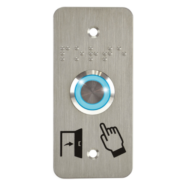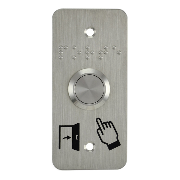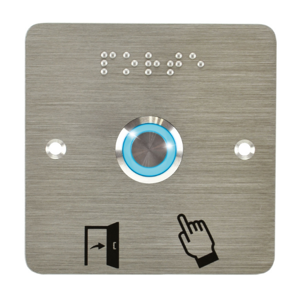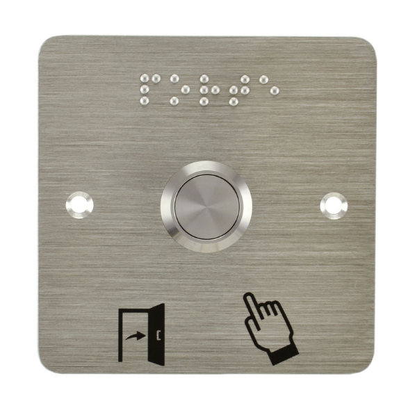 Matériel Acier : inoxydableMarquage plaque : Pictogrammes «Porte et Doigt» et «PORTE» en brailleMode de fonctionnement : ImpulsionnelContact(s) : NO + NFPouvoir de coupure max : 250 V AC / 2 A - 48 V DC / 1 ATempérature de fonctionnement : -25° + 55° CRH : 45-85 % RHDiamètre de perçage :Bouton 19 mm (épaisseur du panneau d’intégration de 1 à 10 mm) / écrou 26 mmIndice de protection : IP [...]