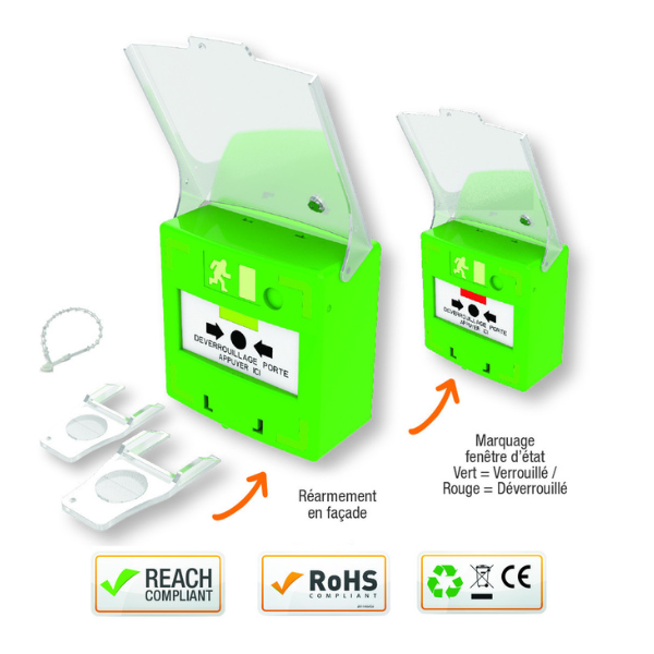 Technologie : Membrane déformable (réarmable en façade)Contact(s) : 3 contacts inverseurs (CO/NO/NF)Pouvoir de coupure max. : 230 V AC / 5 ACouleur du boîtier : VertFenêtre d'état : Intégrée à la fenêtre d’actionMarquage fenêtre d'état : Vert = Verrouill&e [...]