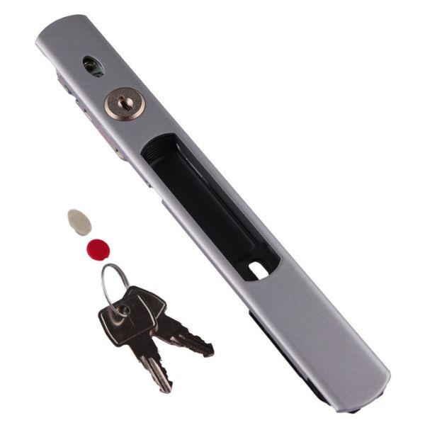 Cuvette pour coulissants. Boîtier en aluminium extrudé, poignée et extremité de verrouillage en polyamide et guide porte-verrou en zamak galvanisé. La vis de fixation et celle de réglage sont pré-assemblées et en acier inox. La poignée est compatible avec n'importe quelle forme et dimension d'usinage sur les profils, l'accouplement et la fixation sont simples et rapides grâce au système de fixation innovant qui évite tout vis en vue. Equipée de dispositif anti-effraction. Compatible avec dispositif anti-fausse manoeuvre (art. 5020A et 5020B). S'applique aux portes avec des poignées de tirage monté sur le côté extérieur.Equipée de verrouillage avec cylindre de sécurité actionné par une clé.