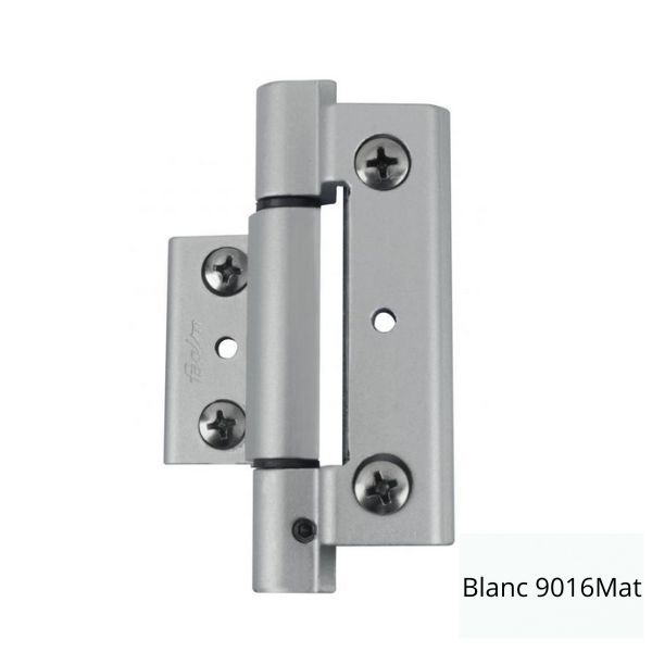 Corps de paumelle en aluminium extrudé anodisé ou laqué. Axe de rotation en acier inox. Douilles de rotation en nylon autolubrifié. Vis et plaques de fixation en acier inox, pré-montées. Predisposition pour la goupille de sûreté pour éviter le glissement vertical. Aspect externe identique à les paumelles de Oscillo-Battant GALIPLUS
