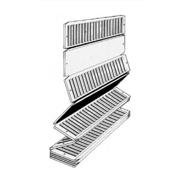 DESCRIPTION : Gamme de cales de pose en réglettes de 10 cales , réalisé en POLYPROPYLÈNE translucide , pliage en accordéon fait l’effet de ressort , cales reliées par une charnière prédécoupé , épaisseur variable de 10 x 1,3 mm