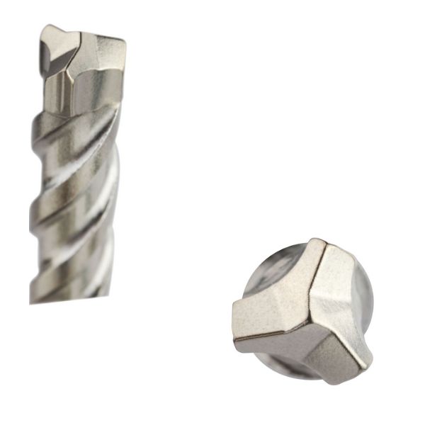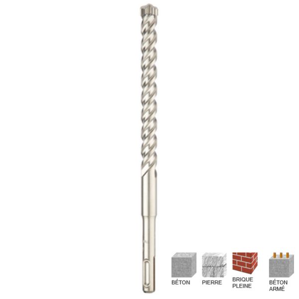 Tête massive monobloc 100% carbure.Taillants en forme de S.3 larges stabilisateurs latéraux.Pointe de centrage proéminente.Hélice triple taillage en U.Goujure Large.Listel épais.Perce le béton armé.