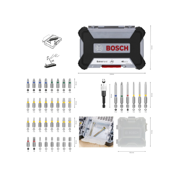 Embouts de tournevis extra durs, avec porte embouts universel.