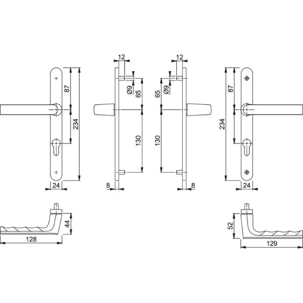 Garniture compléte en aluminium anodisé ou époxy sur plaque étroite fondue pour porte fenêtre.