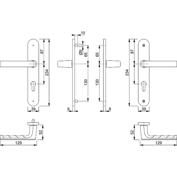 - Liaison : carré à montage rapide HOPPE avec carré plein HOPPE (poignées mâle/femelle)